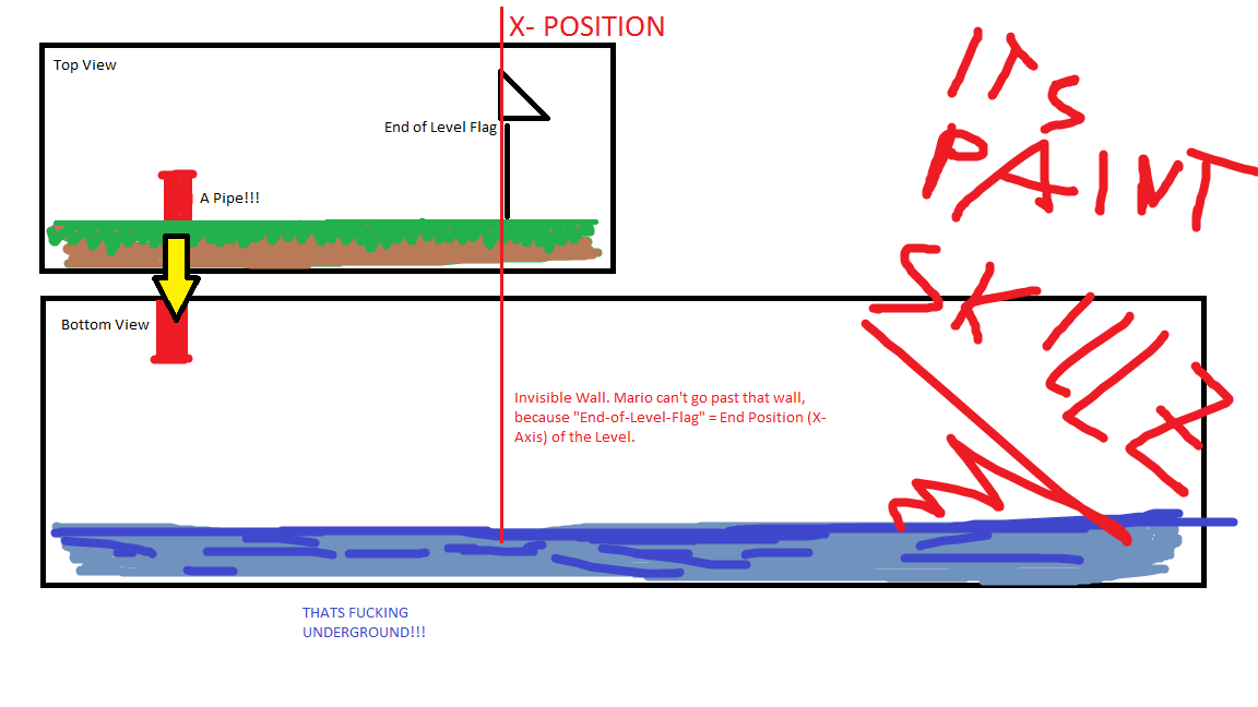 Example: You have two view. The first is placed on top of the other one. There is the "End-of-Level-Flag" on the top view. The bottom view is longer than the top one. Mario will stop walking on the bottom view, when the "End-of-Level-Flag" 's X Position is reached. I will demonstrate that a little better with this Image: ![]()