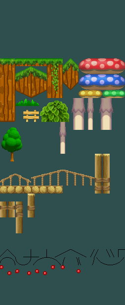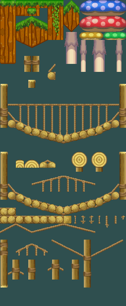 After days of work, I managed to make some World-Themed Tilesets for the hack, you can download all of them by CLICKING HERE. I still plan on making more Tilesets, but for now, here are some previews of the ones that I finished: MUSHROOM GORGE Man, It took me like 7 f**king hours to make this goddamn Tileset... MUSHROOM GORGE 2 This one includes some decoration, paths and a simplified version of the bridge, we could use this one for normal Mushroom Gorge levels and the other one could be used for Mushroom Gorge Atlethic levels. SNOWY SAVANNAH Includes a blue variant. SNOWY SAVANNAH 2 This one includes ice, mini mario blocks and paths, I couldn't include those in the other one due to space limitations. RUSHING RAPIDS (Remastered) This time I included some "Hot Dogs", windmills, and improved some other stuff, the ZIP file also contains a redesigned version of the level I sent before, since it got really messed up with the new Tileset importation. Credits for ItzTacos, TRS and the Newer Team for making some of the stuff used in these Tilesets That's all for now, what do you think guys? Any question or suggestion is well received. _________________________ ![]() ![]() My YouTube Channel NSMB Central Discord Server