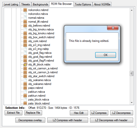 Posted by Piranhaplant I believe that's because of this bug. You can try editing that file with an old version of the editor and it might work. Yeah, it's that silly bug with InlineFiles again. It's fixed in the Java port